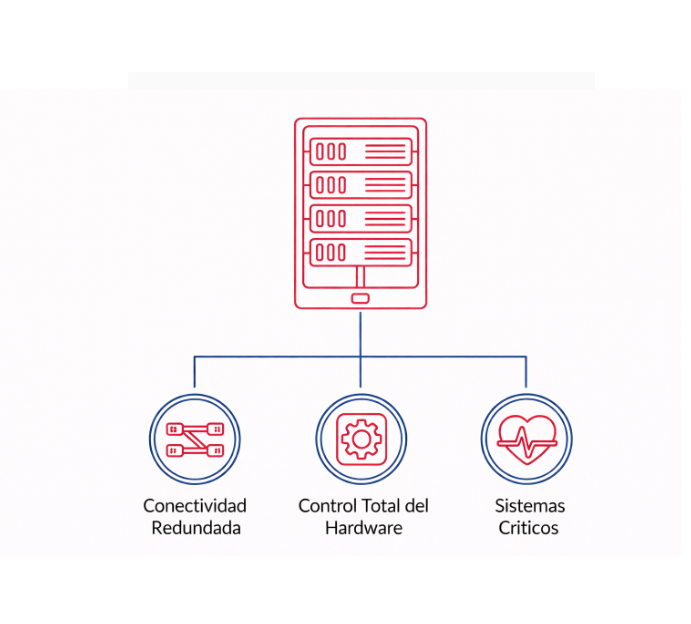 Alojamos tu servidor en nuestra infraestructura. Conectividad redundada y alta disponibilidad. Control total del hardware con entorno profesional. Ideal para sistemas críticos.